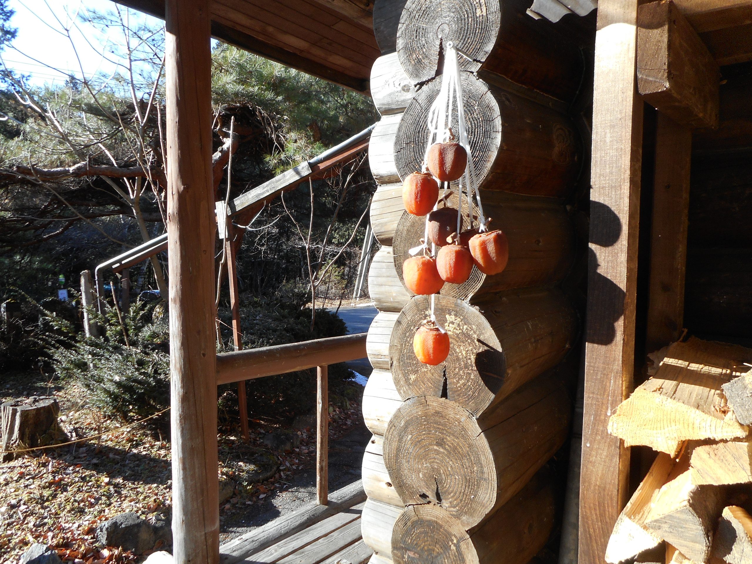 今日は時々お越しになるお客様から干し柿を分けてもらったので事務所の出入り口につるしておきました