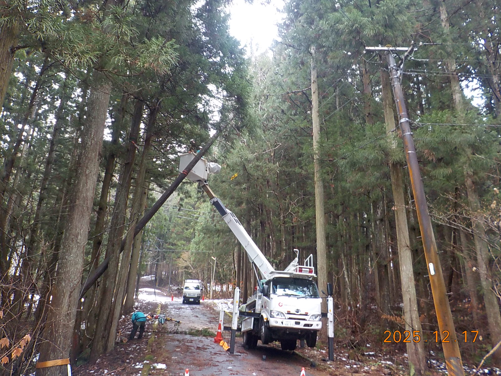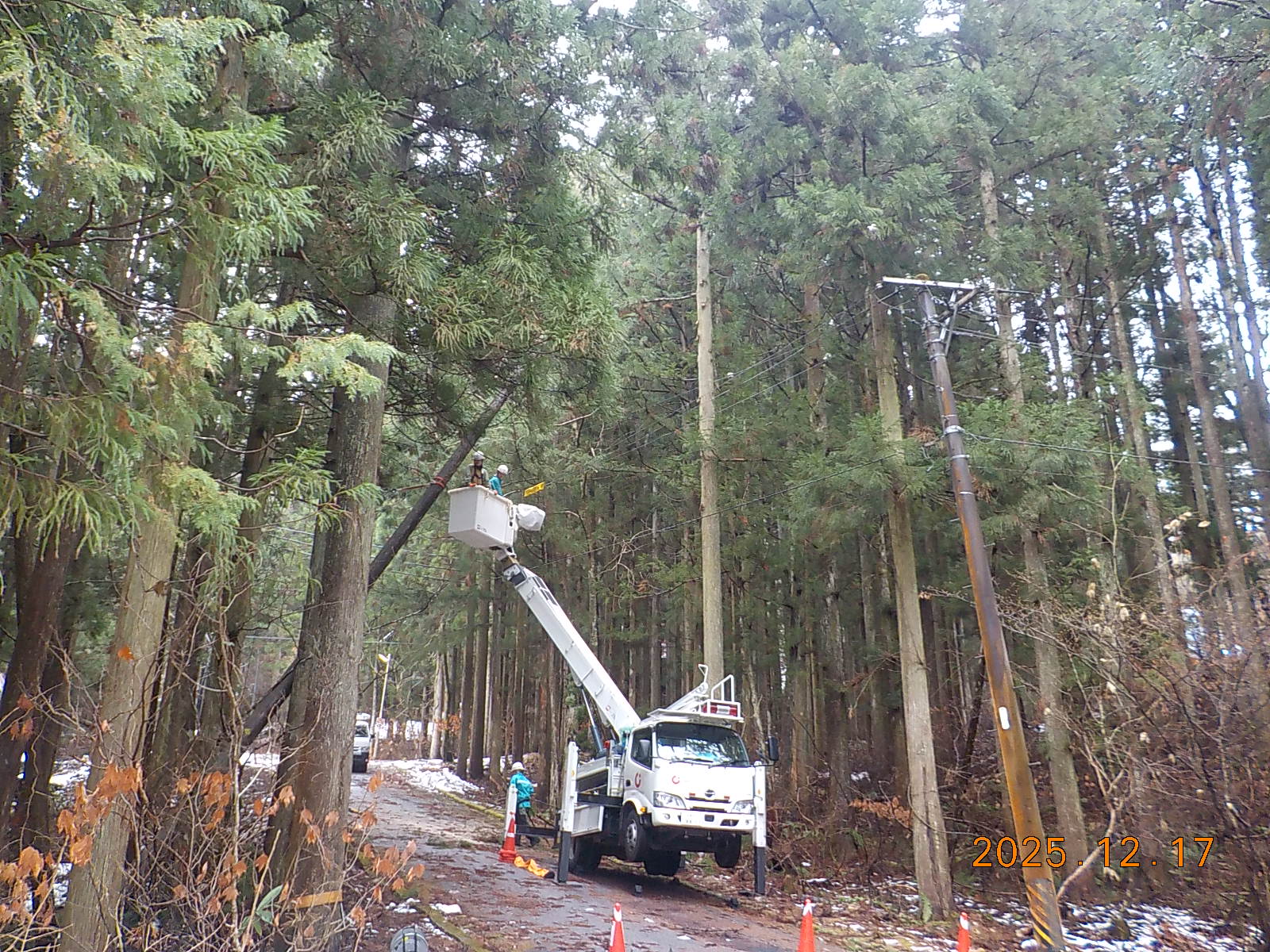 別荘地内で倒木が発生しておりましたが、現在は安全に通行できるよう処理を完了しております。