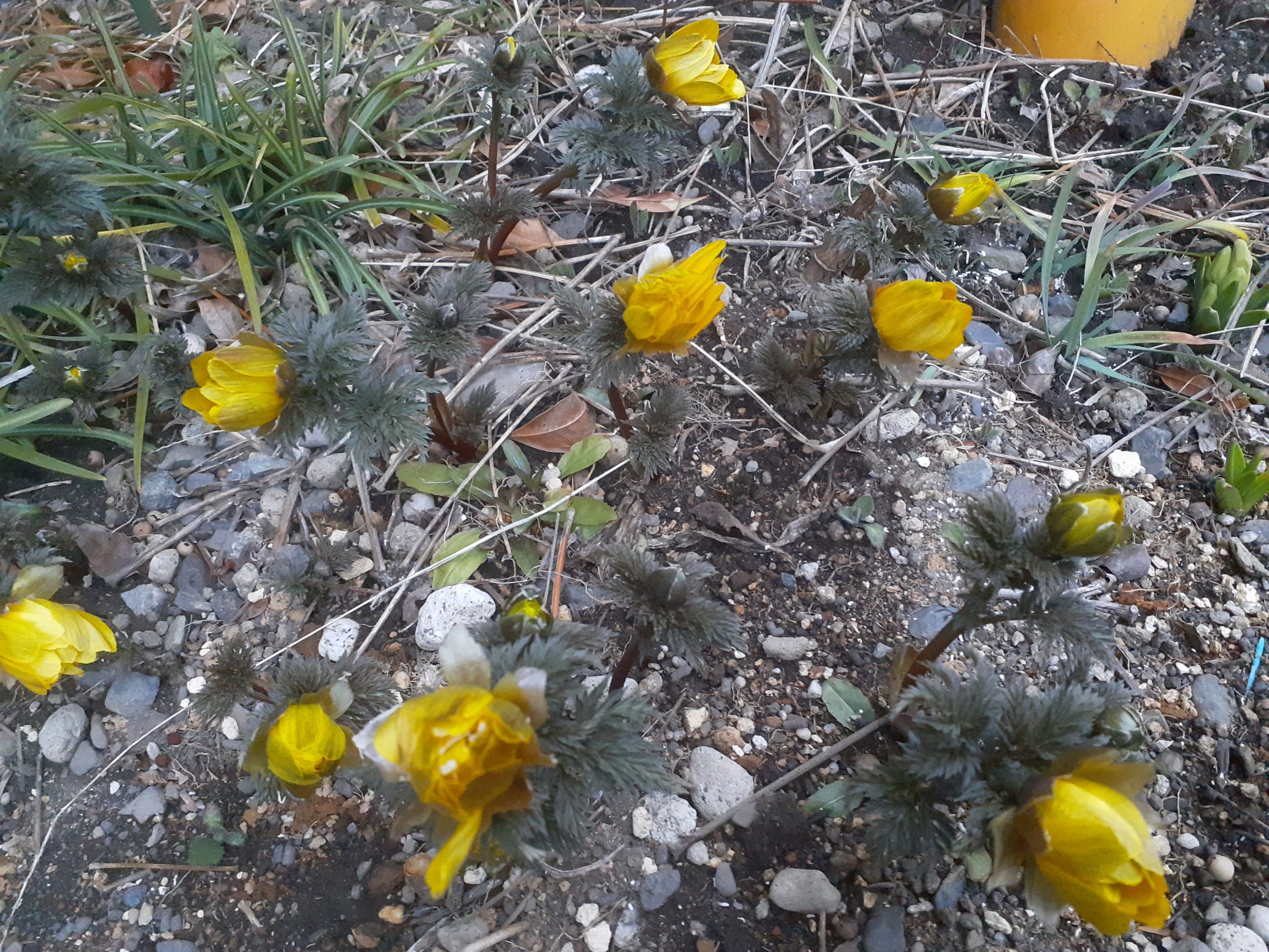 国道19号線よりオリンポスに向かってくると所々でフクジュソウが咲いて来ています