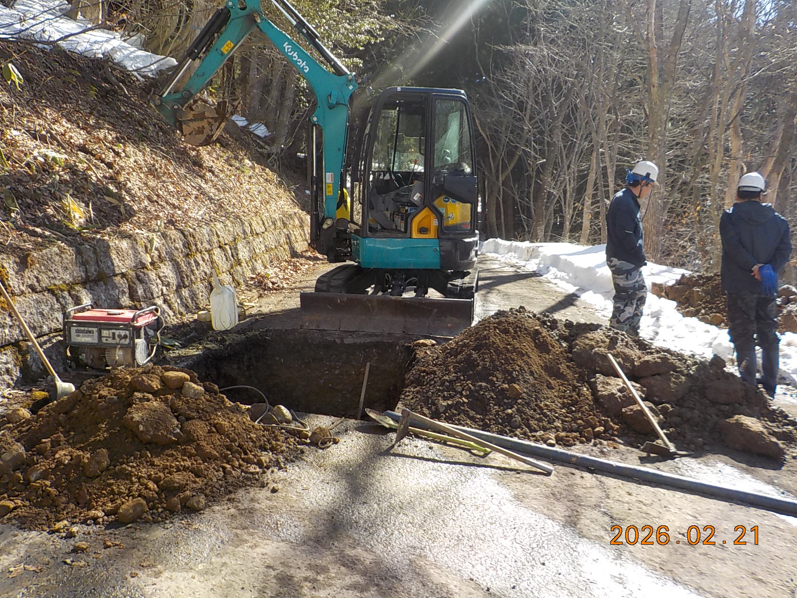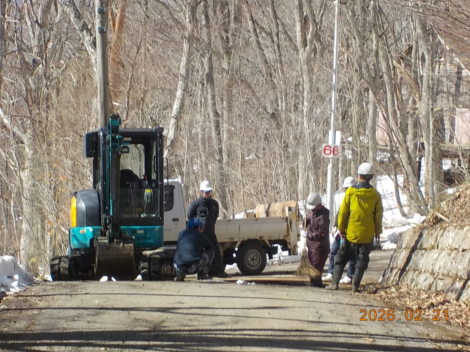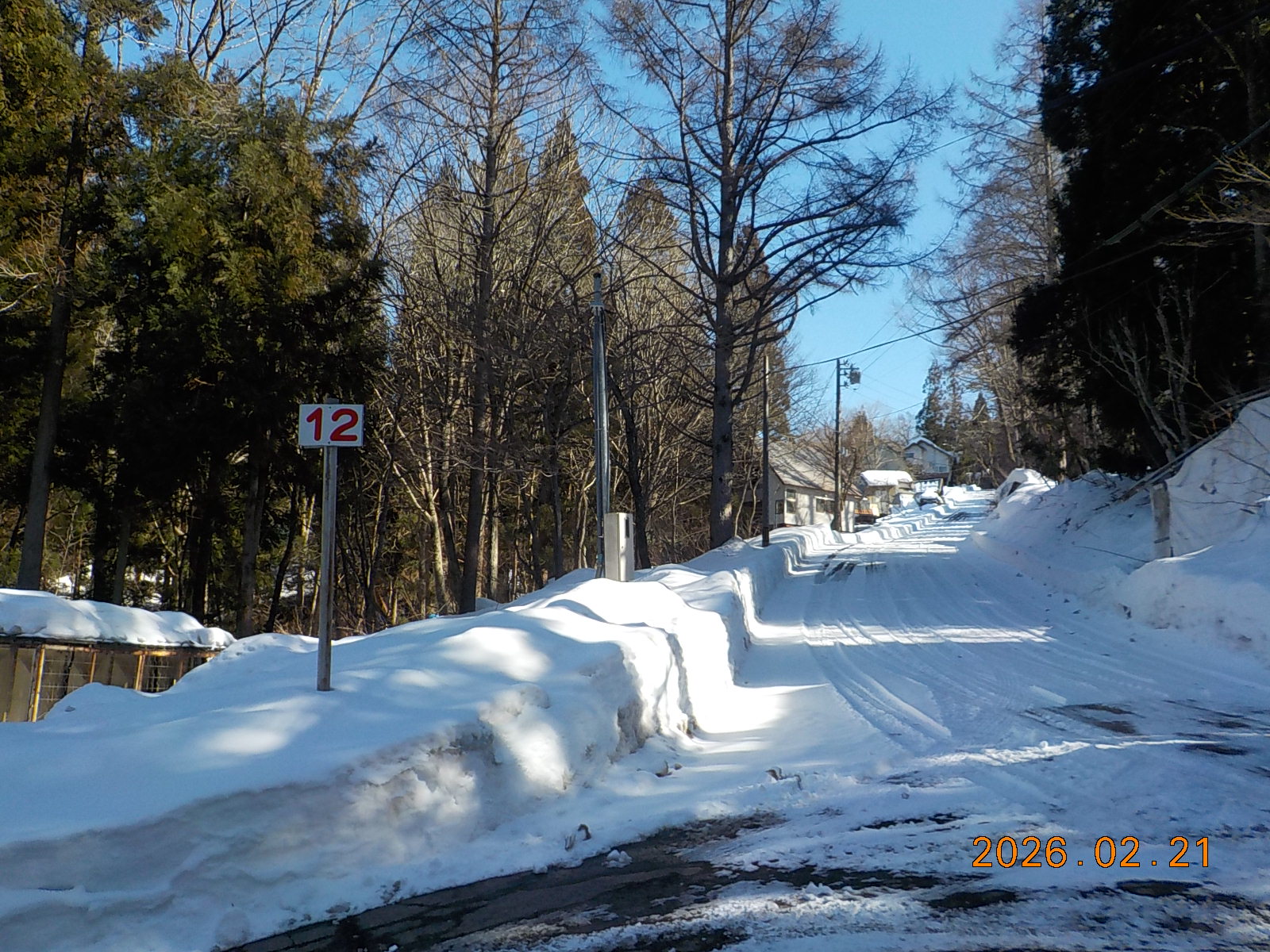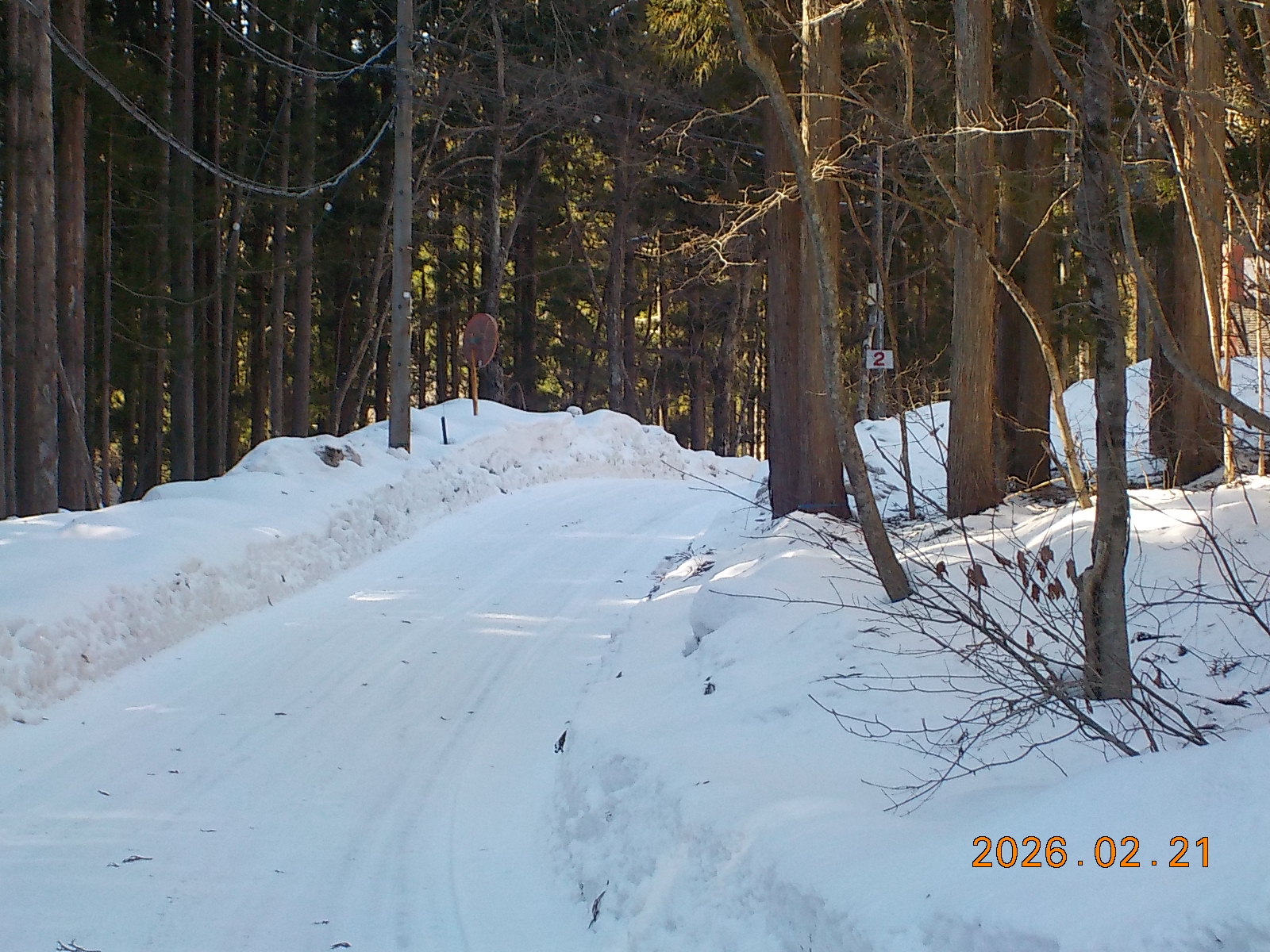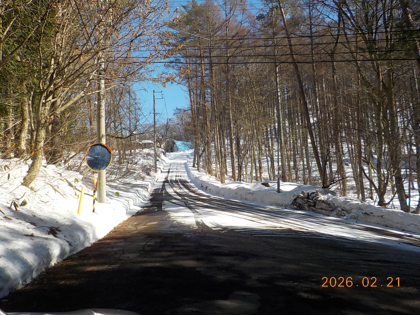 場内道路の除雪が完了しております。陽当たり良いところはアスファルトが見えていますが、日陰のところでは雪が残っている場所もあります。4WD・スタッドレスタイヤを履いたお車でお越しくださいますようお願いいたします。