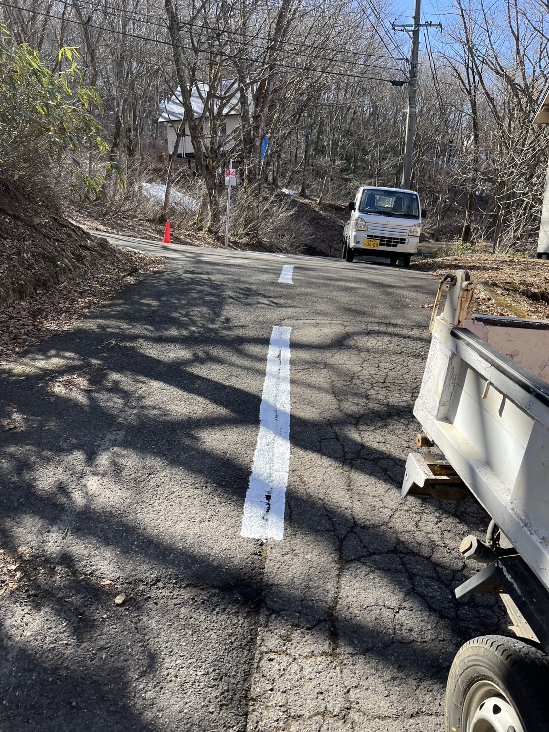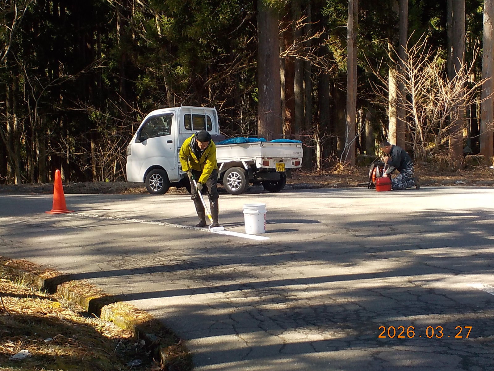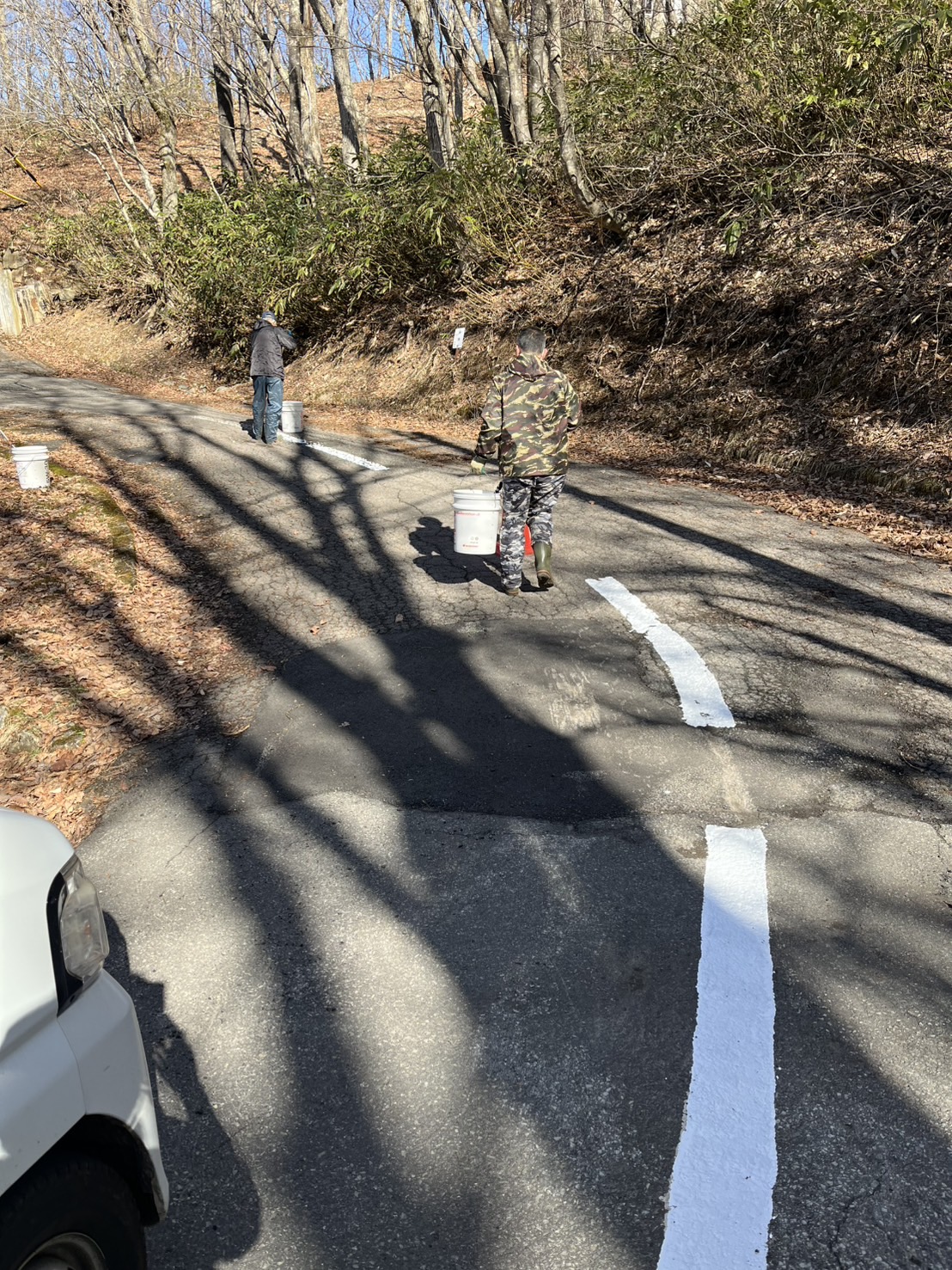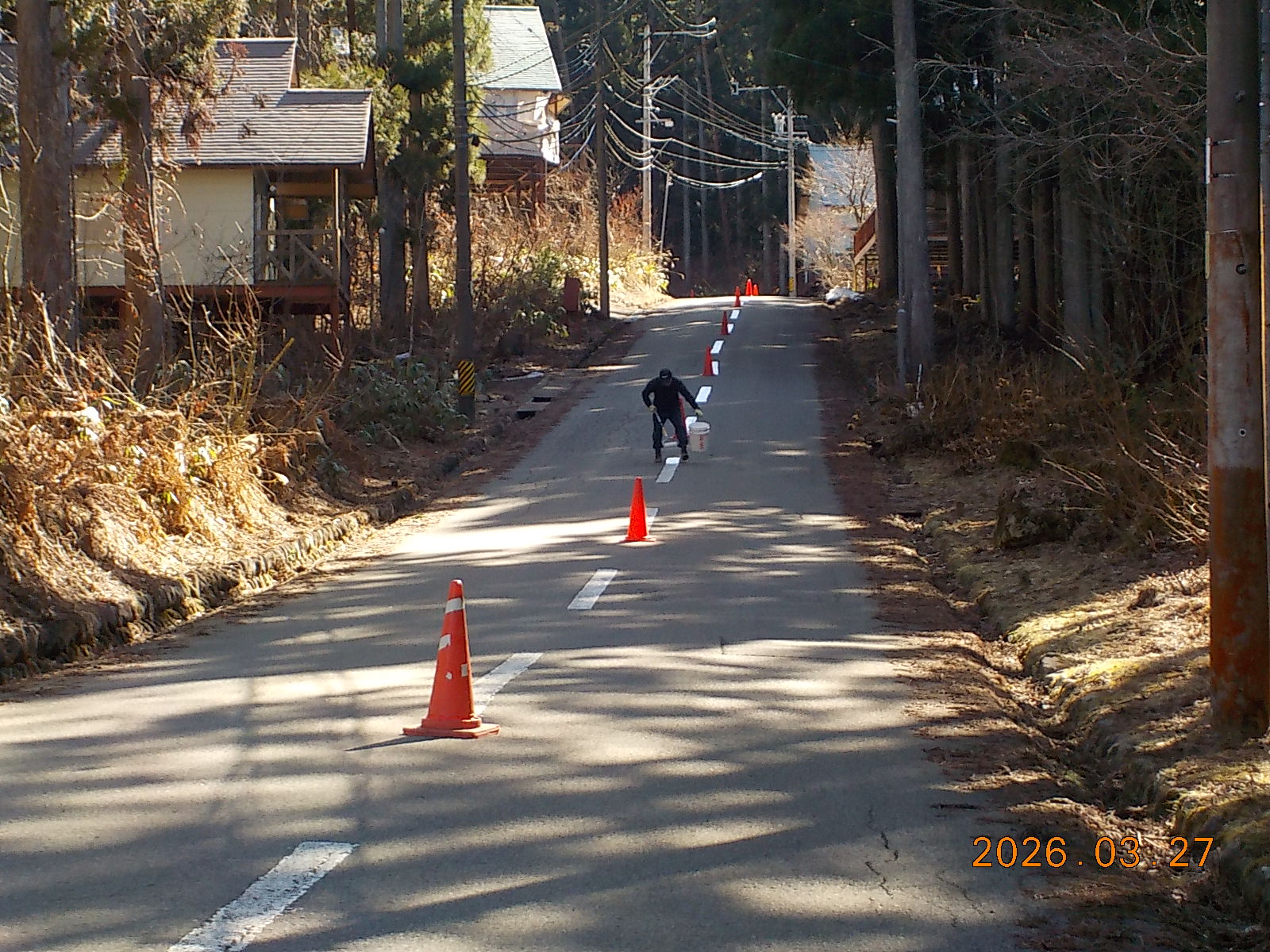 本日は天気にも恵まれ、本線道路の白線引き作業を行っています。