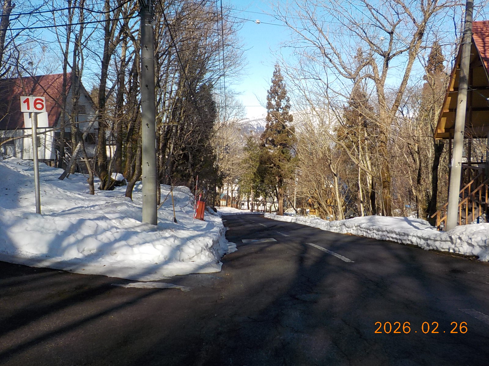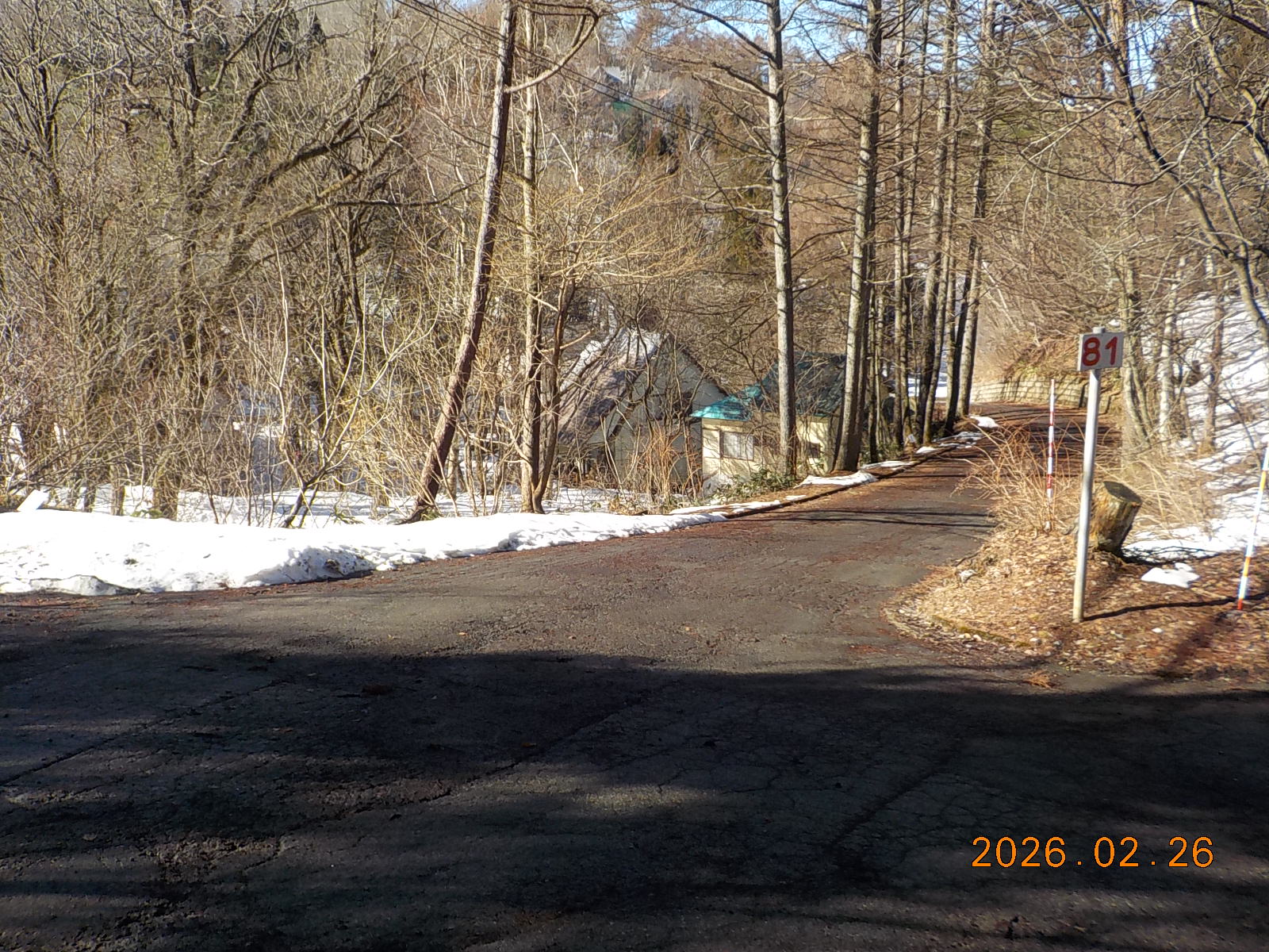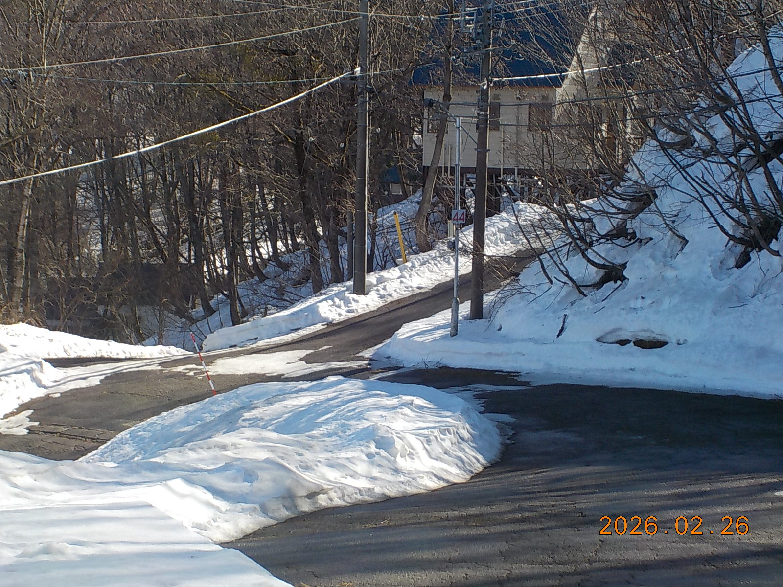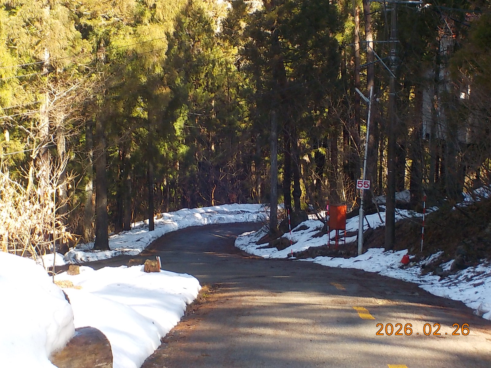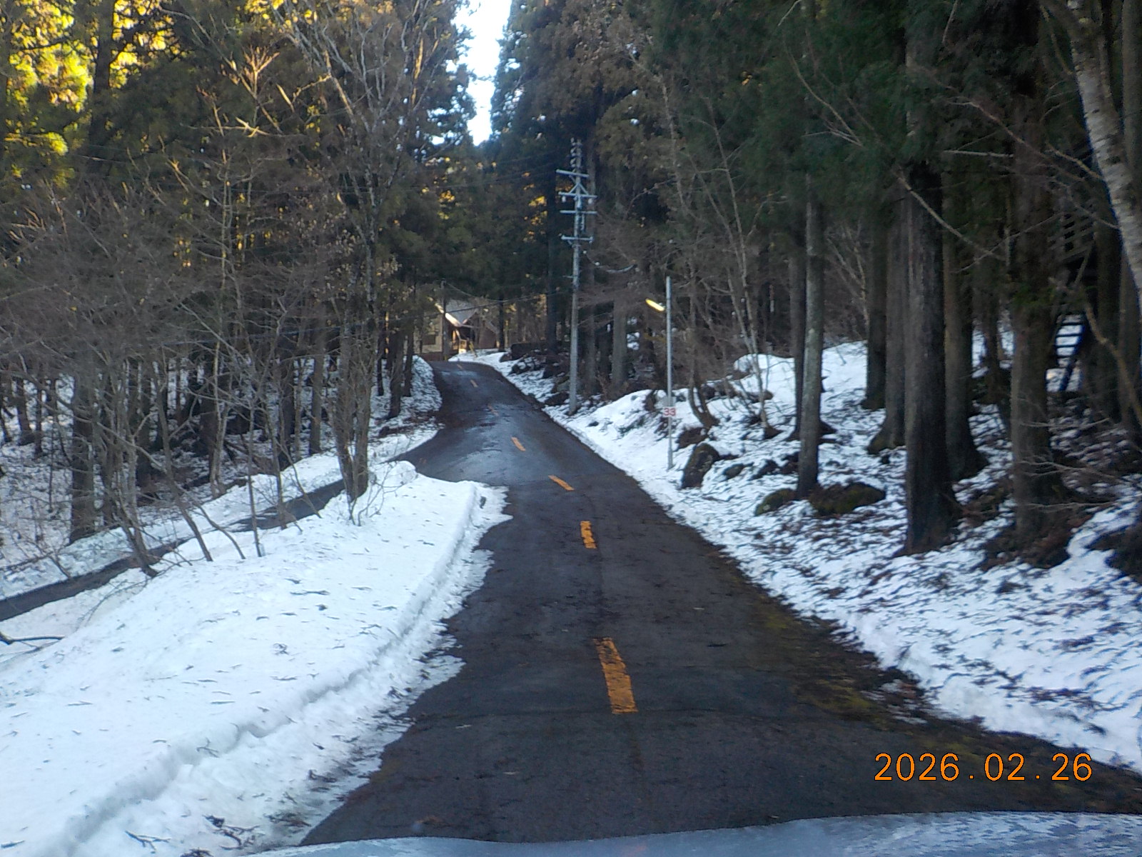 3日前の雨で雪が融けて、道路脇には30cm~40cm積雪がございますが、道路はほとんどアスファルトが出ています。