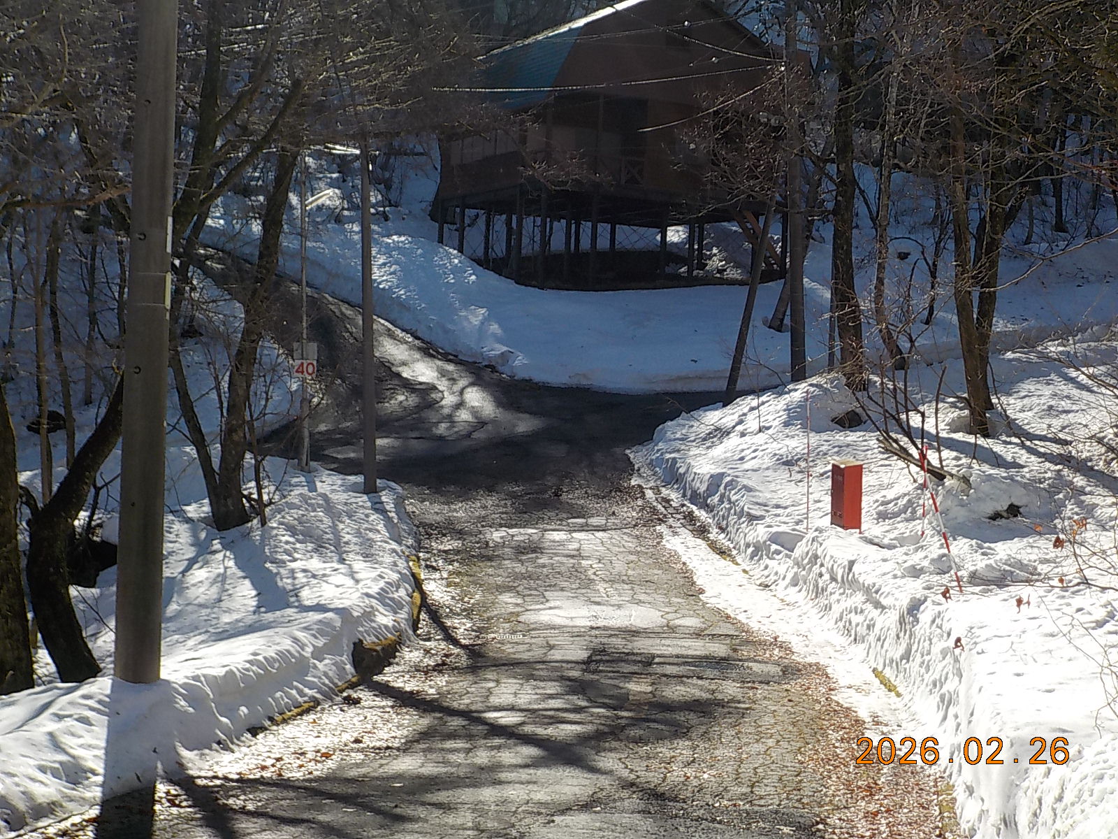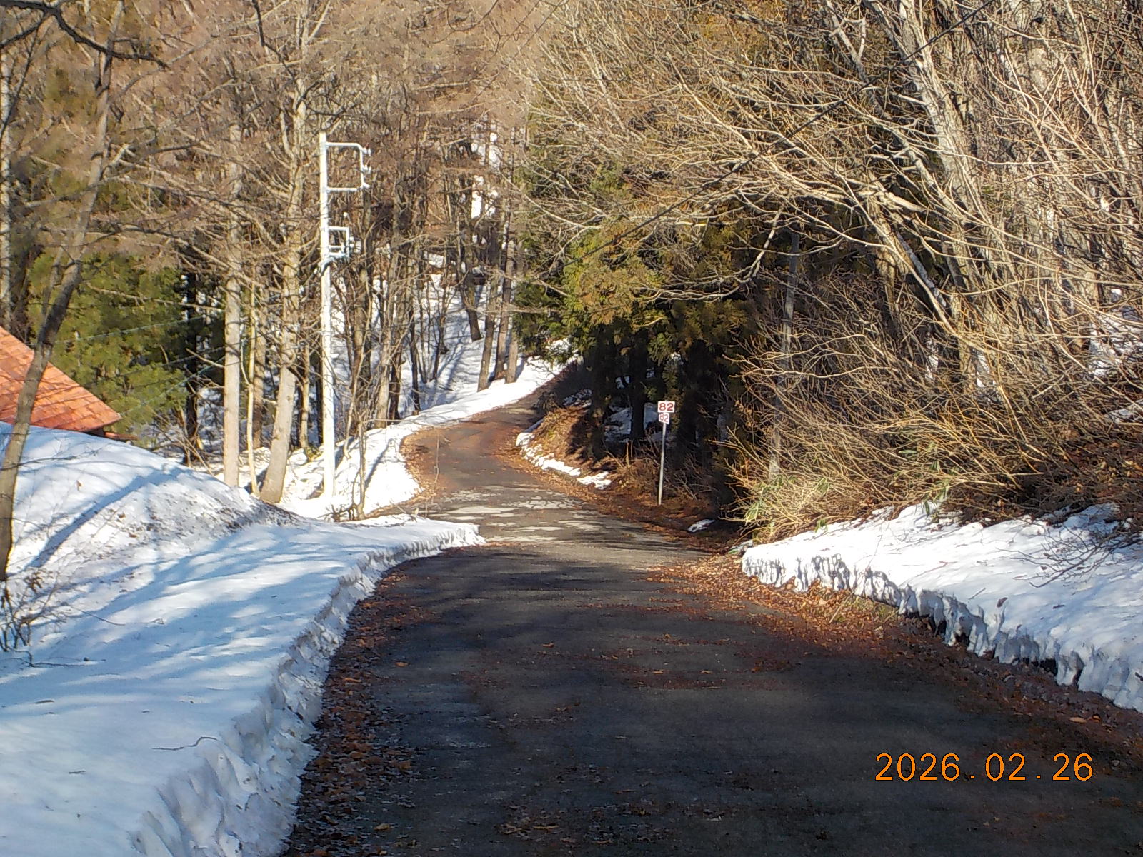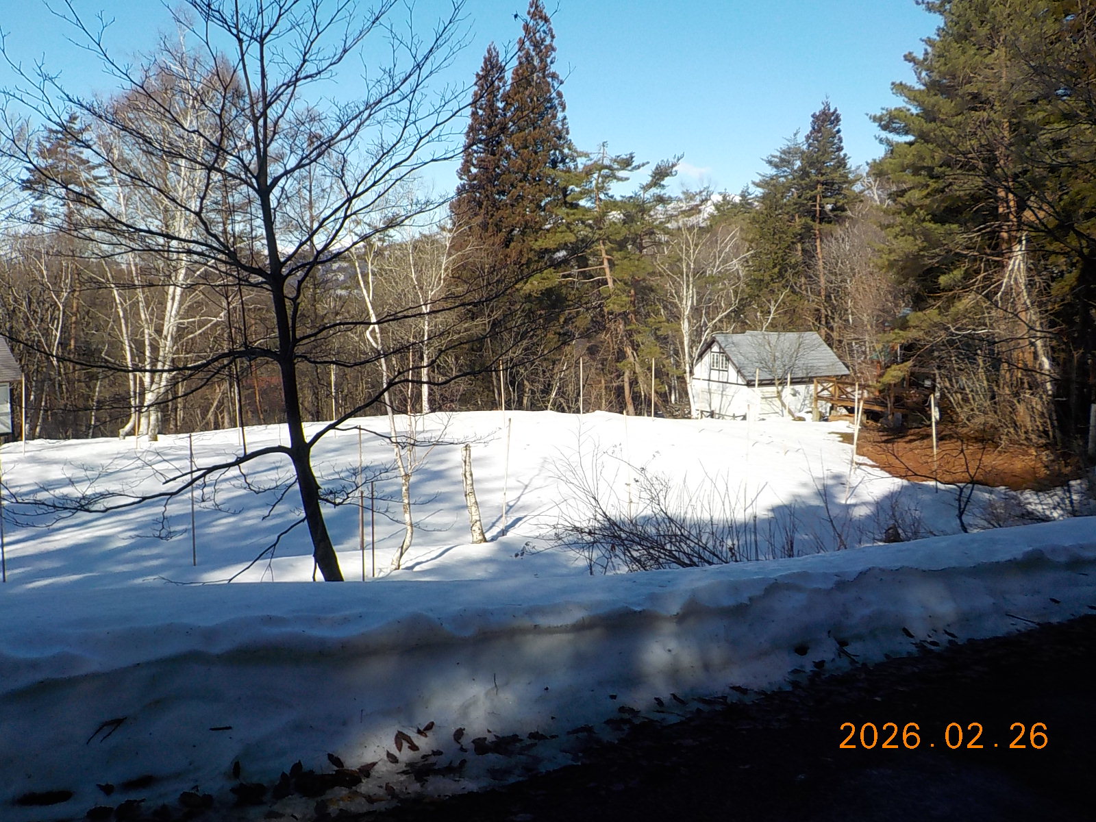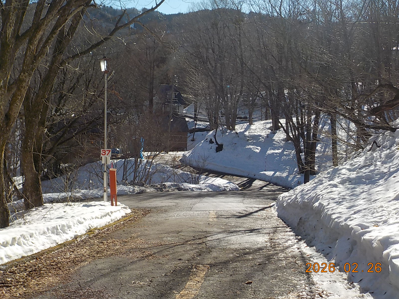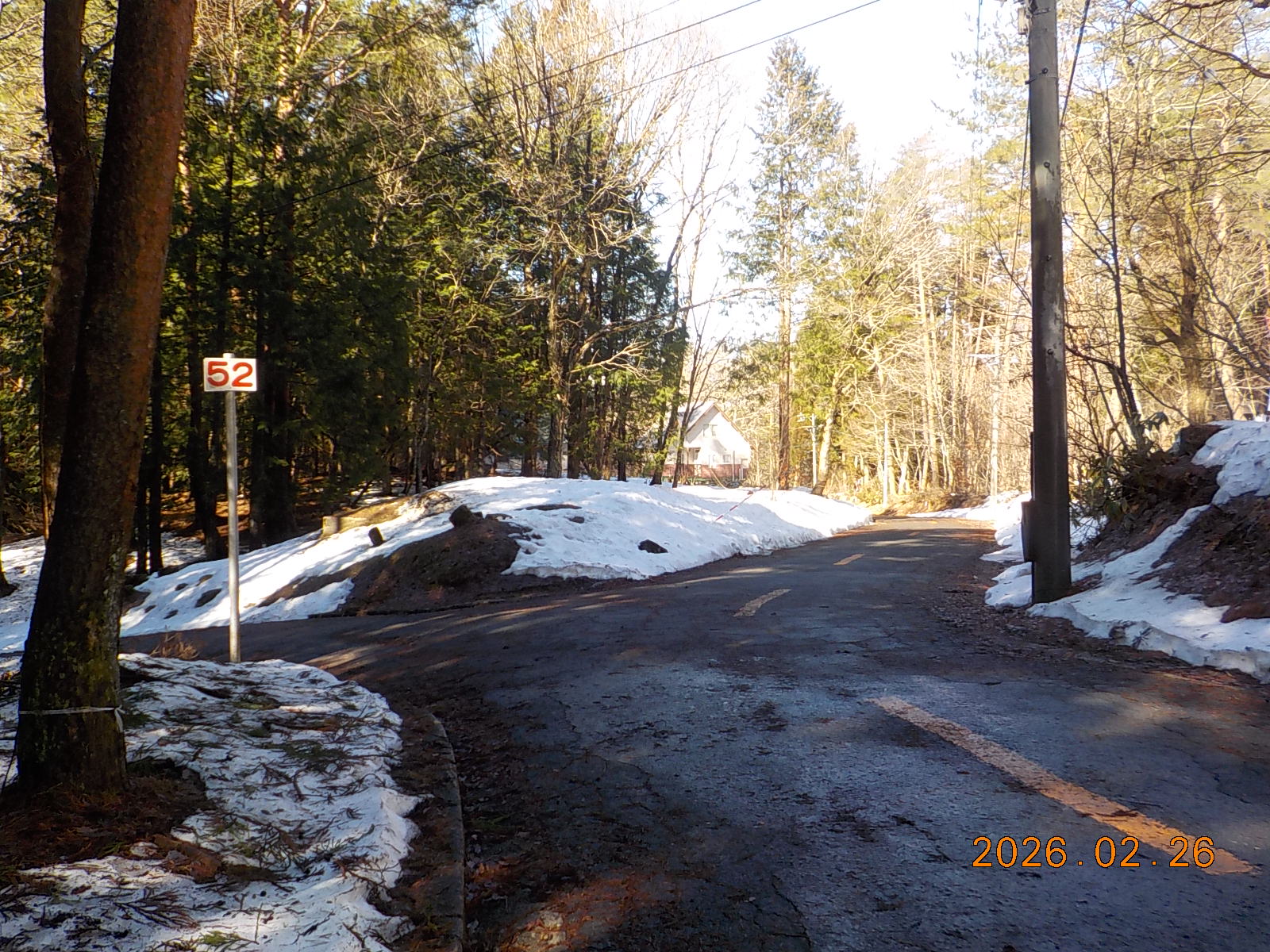 3日前の雨で雪が融けて、道路脇には30cm~40cm積雪がございますが、道路はほとんどアスファルトが出ています。