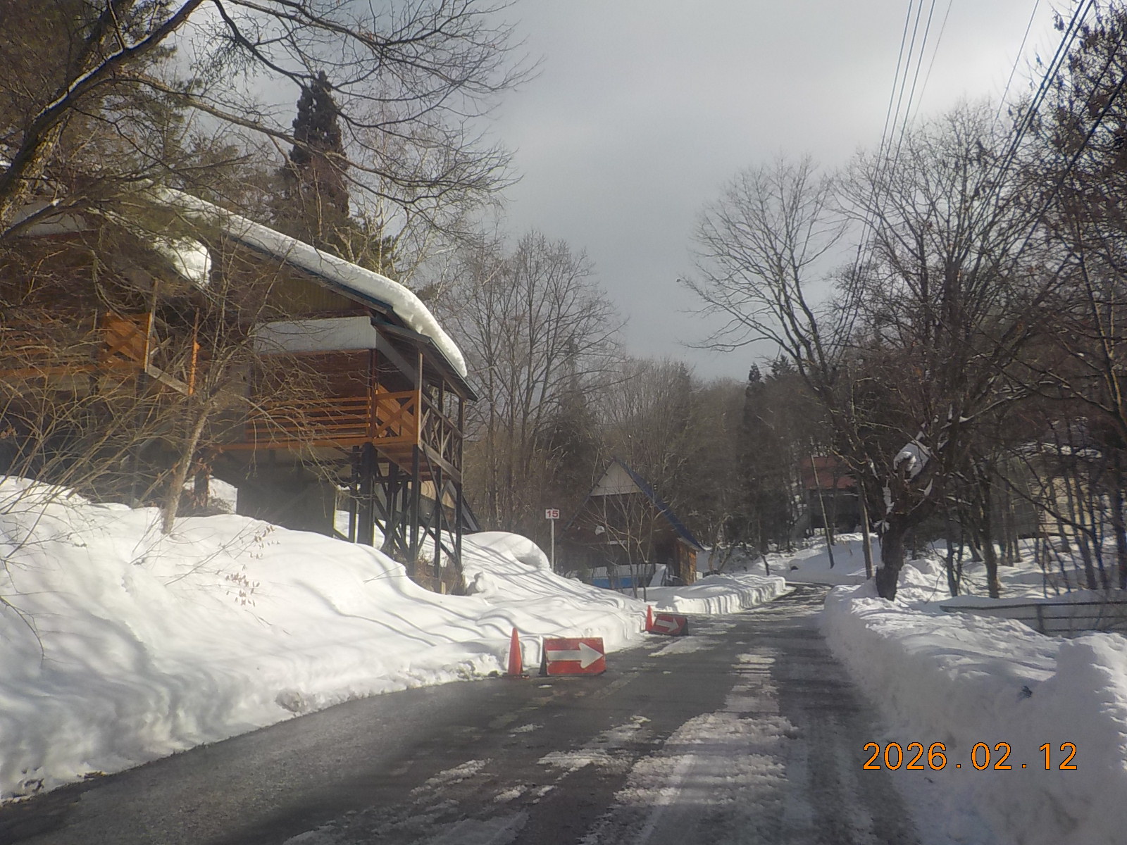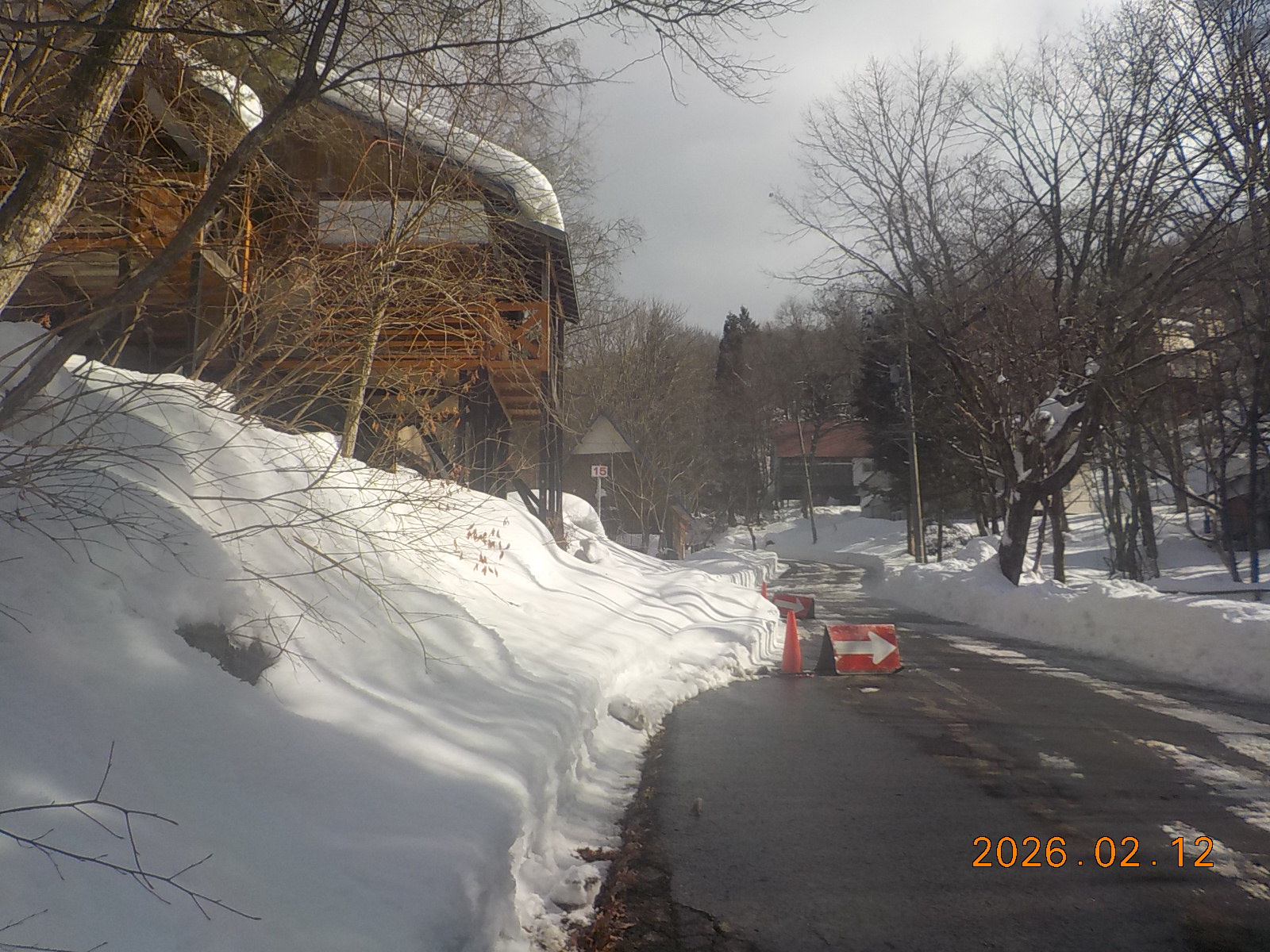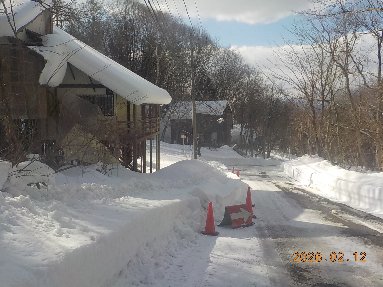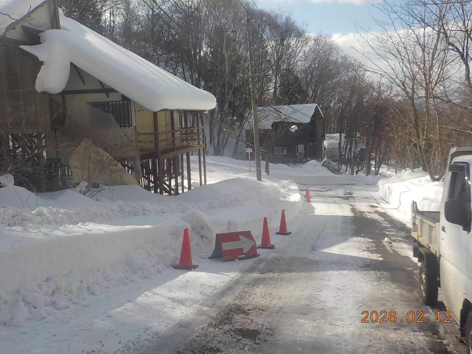 別荘地内道路の除雪を行っておりますが、落雪しているところが多いので注意が必要です。