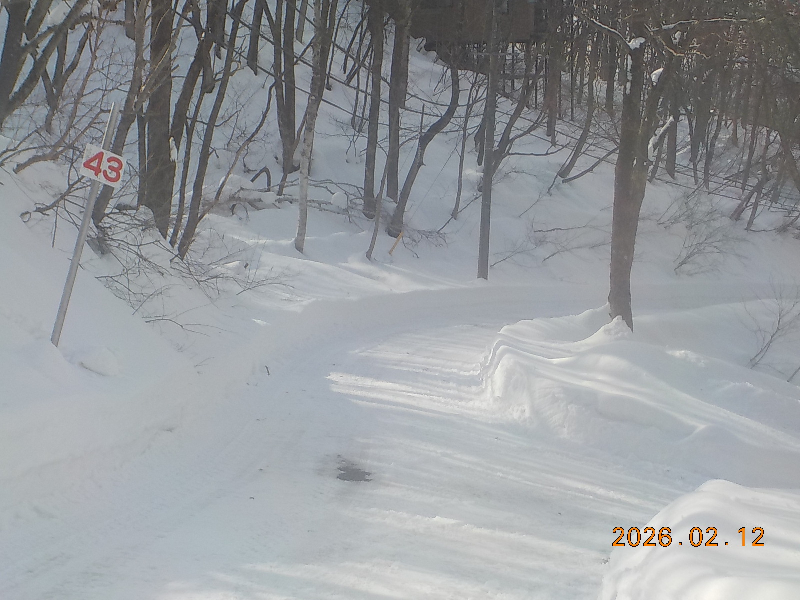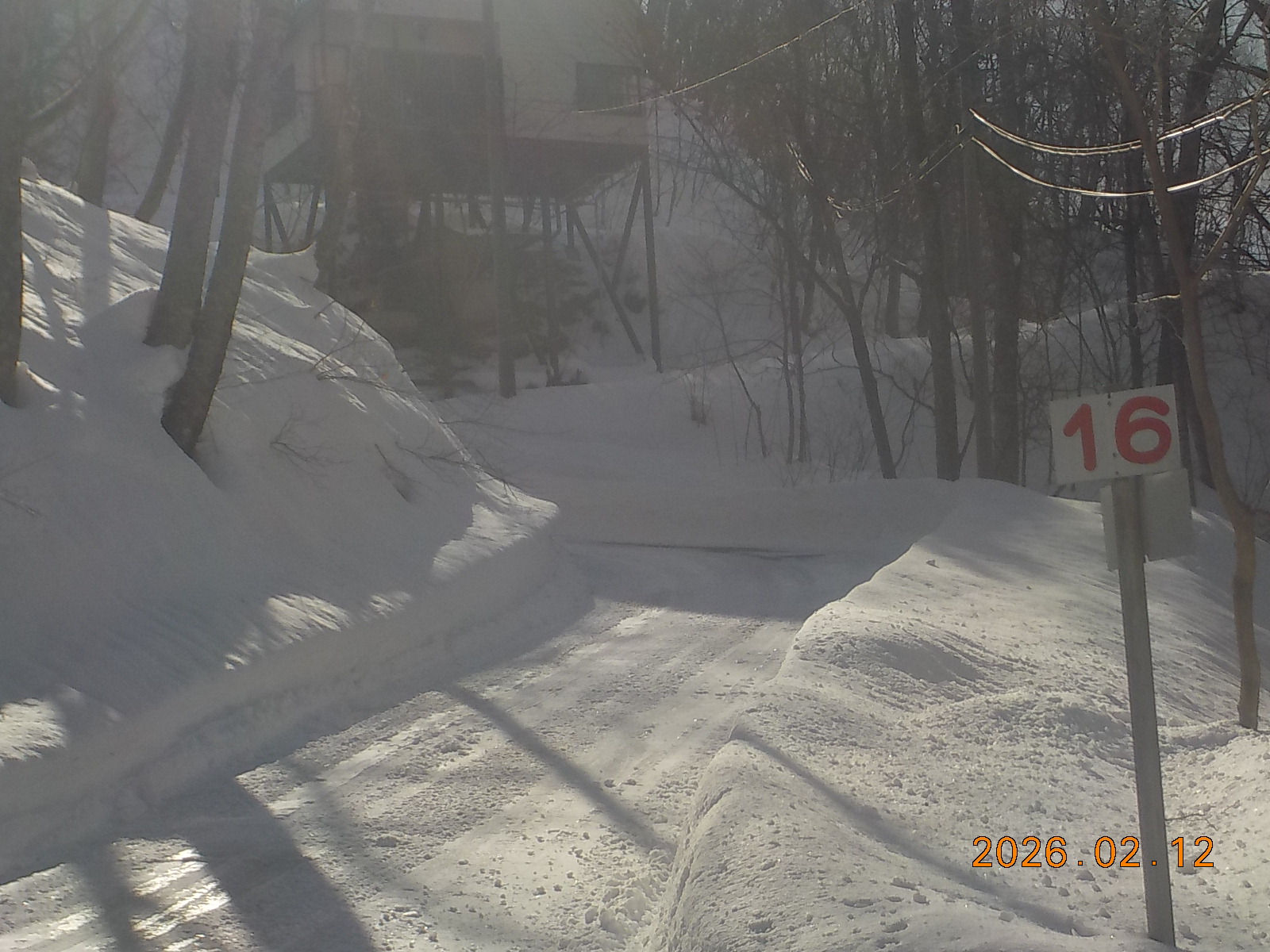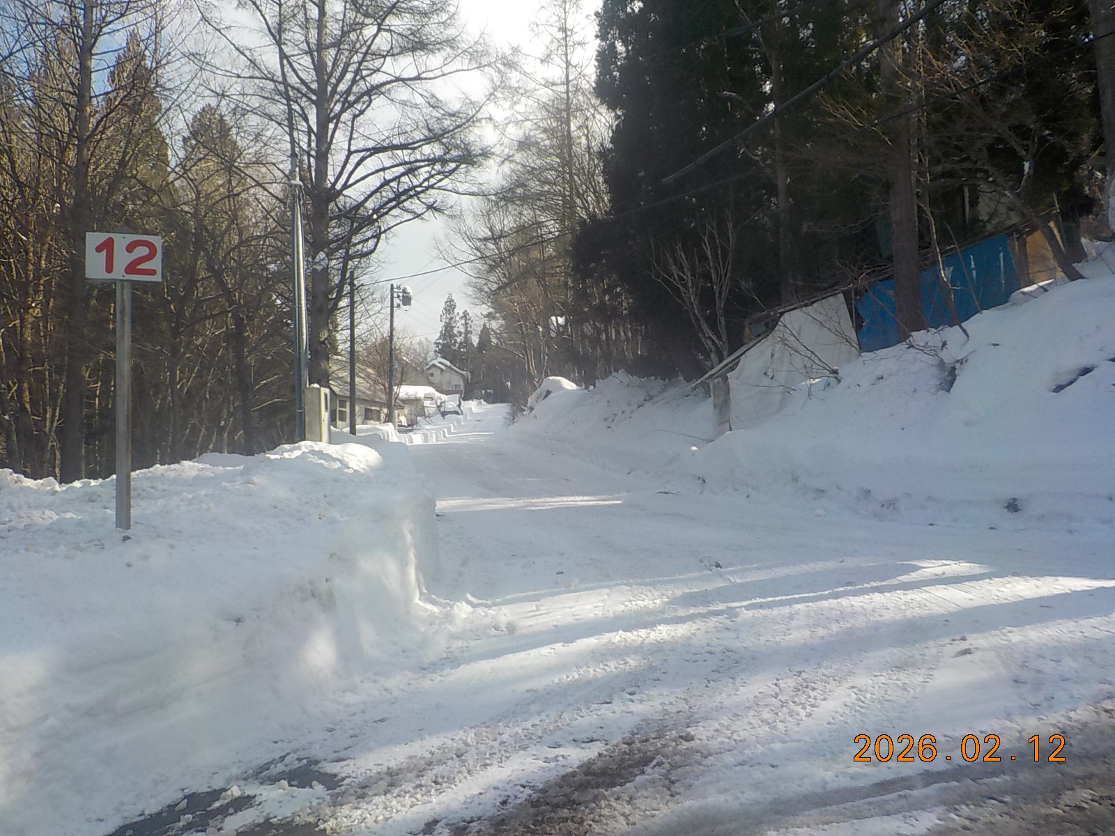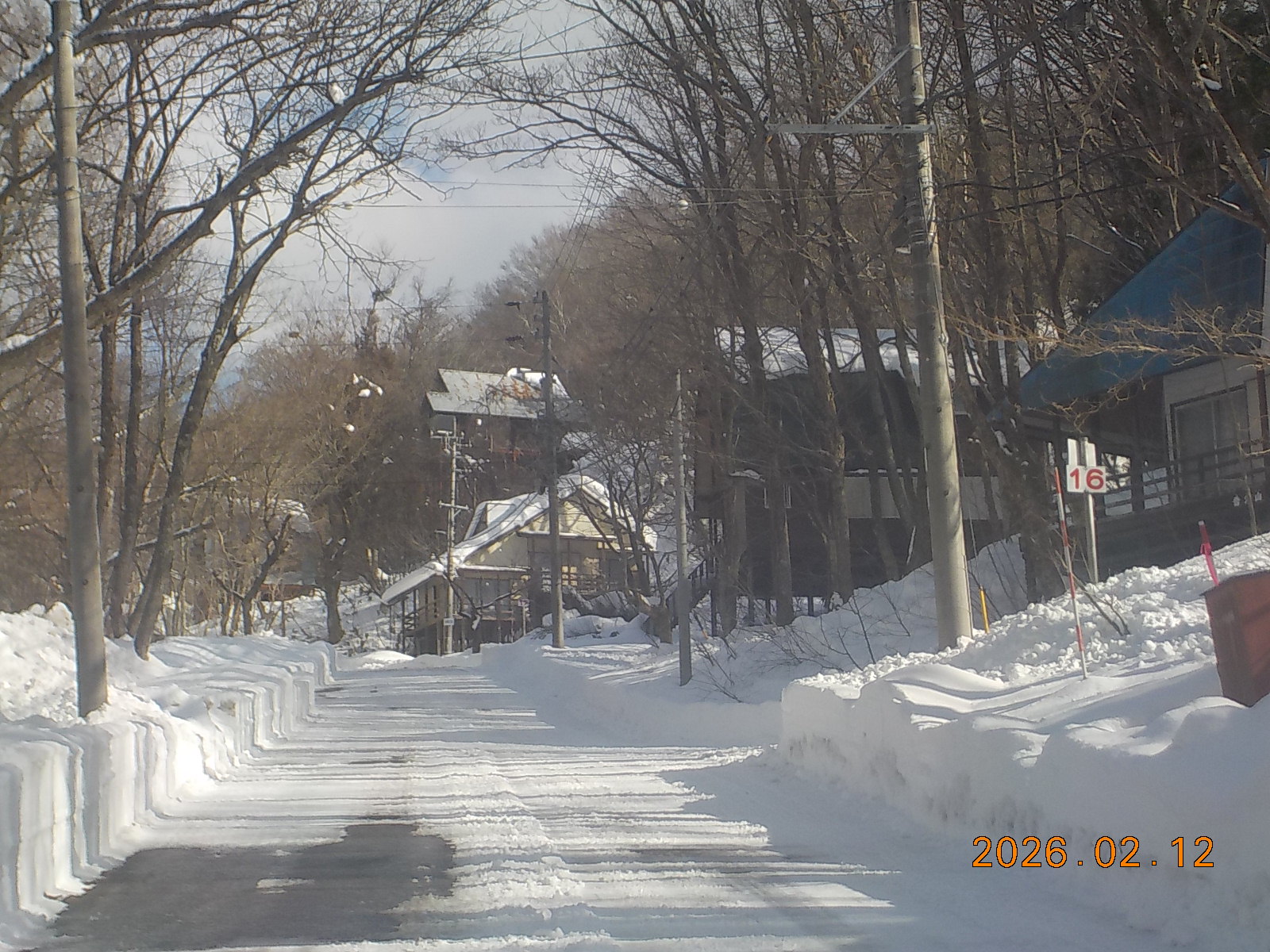 別荘地内道路の除雪を行っておりますが、落雪しているところが多いので注意が必要です。
