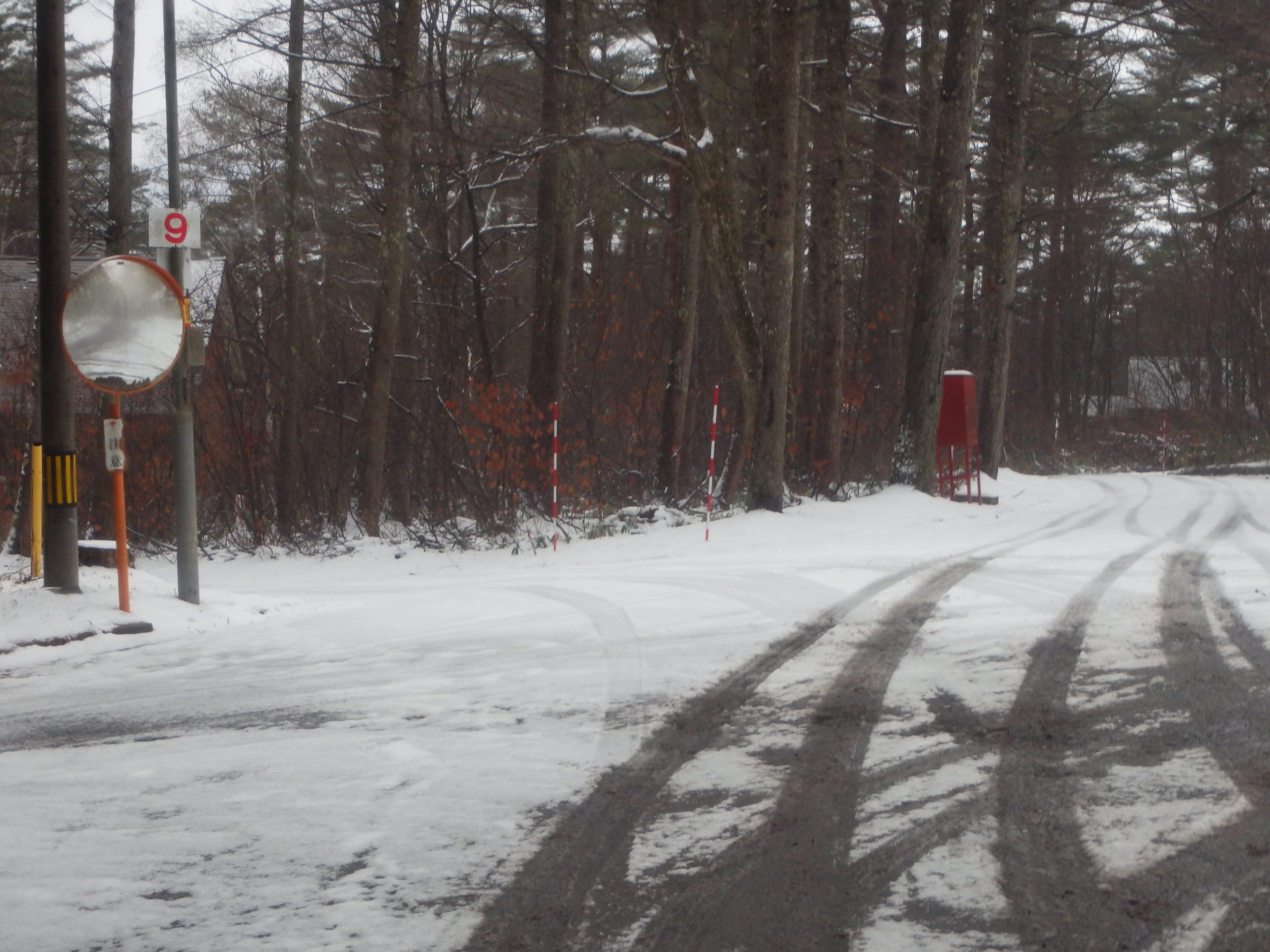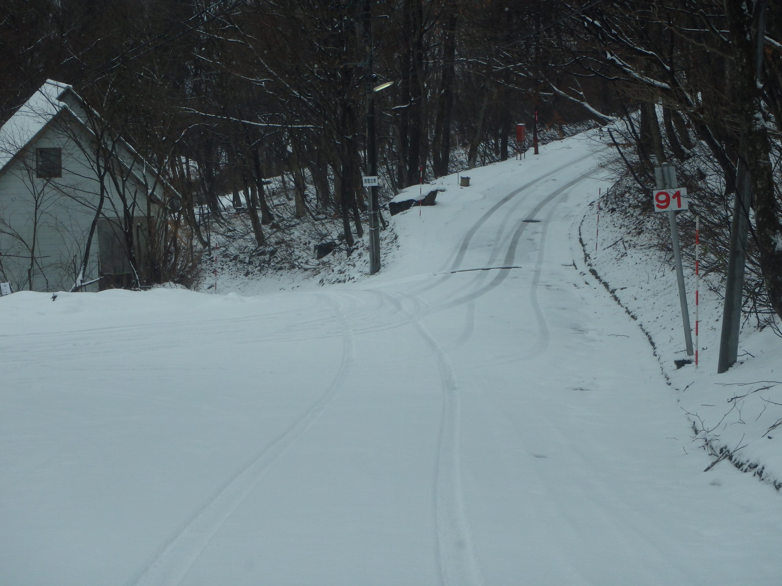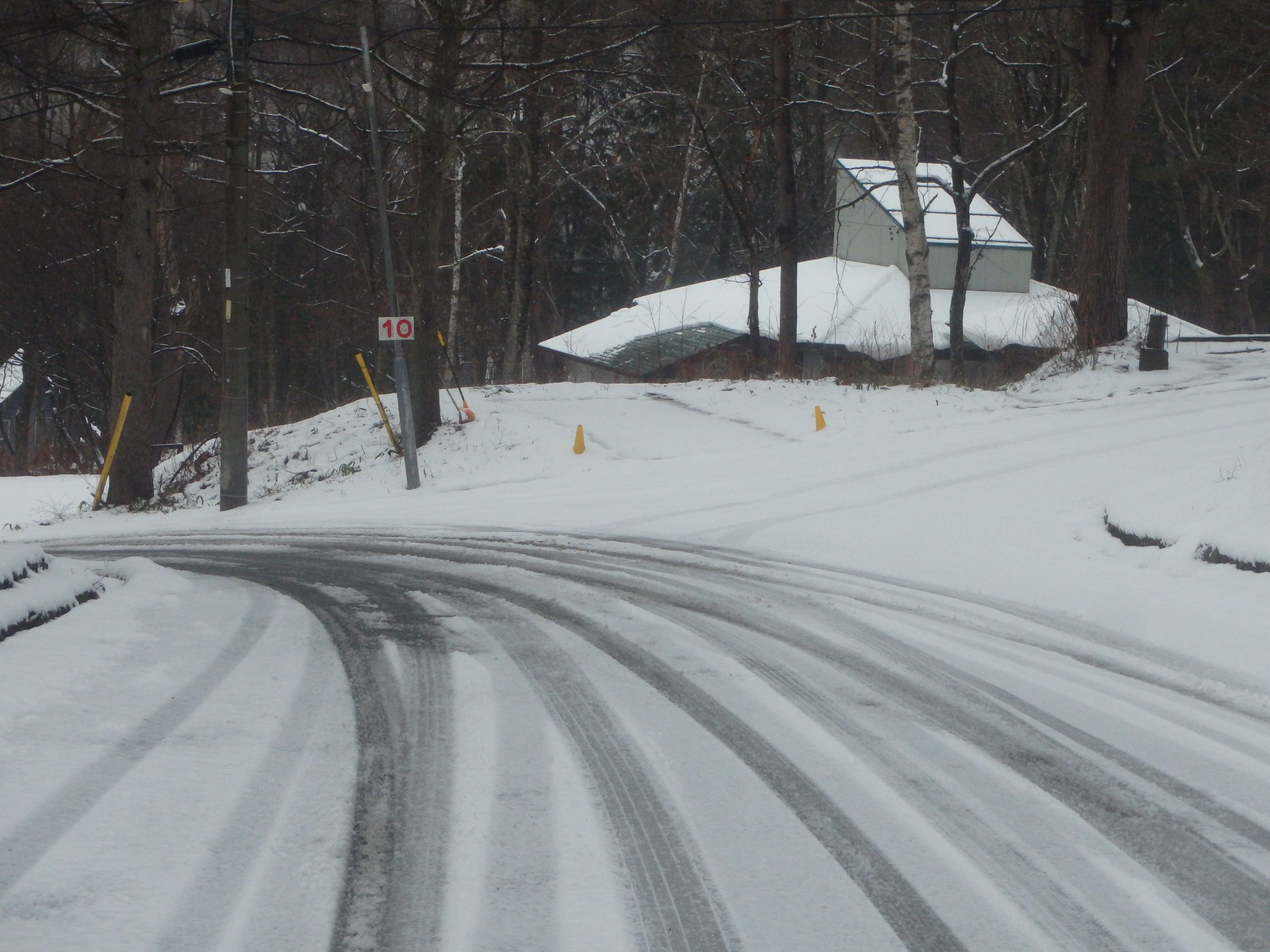 別荘地内は積雪は多くありませんが、朝晩の冷え込みや、日陰やカーブなどで道路が凍結・スリップしやすい場所があります。