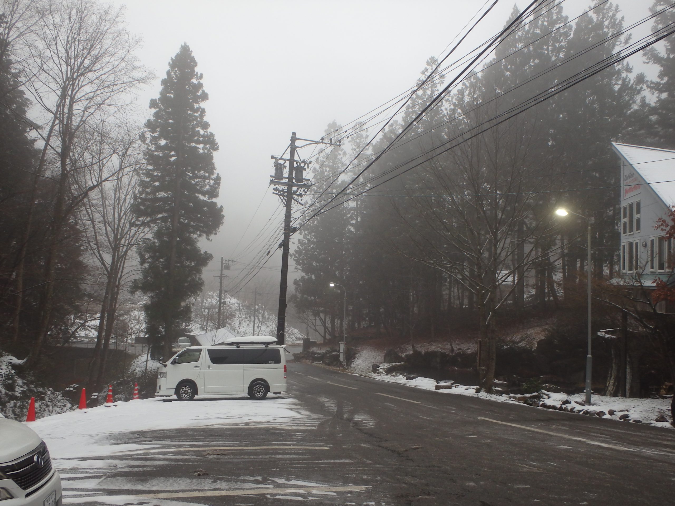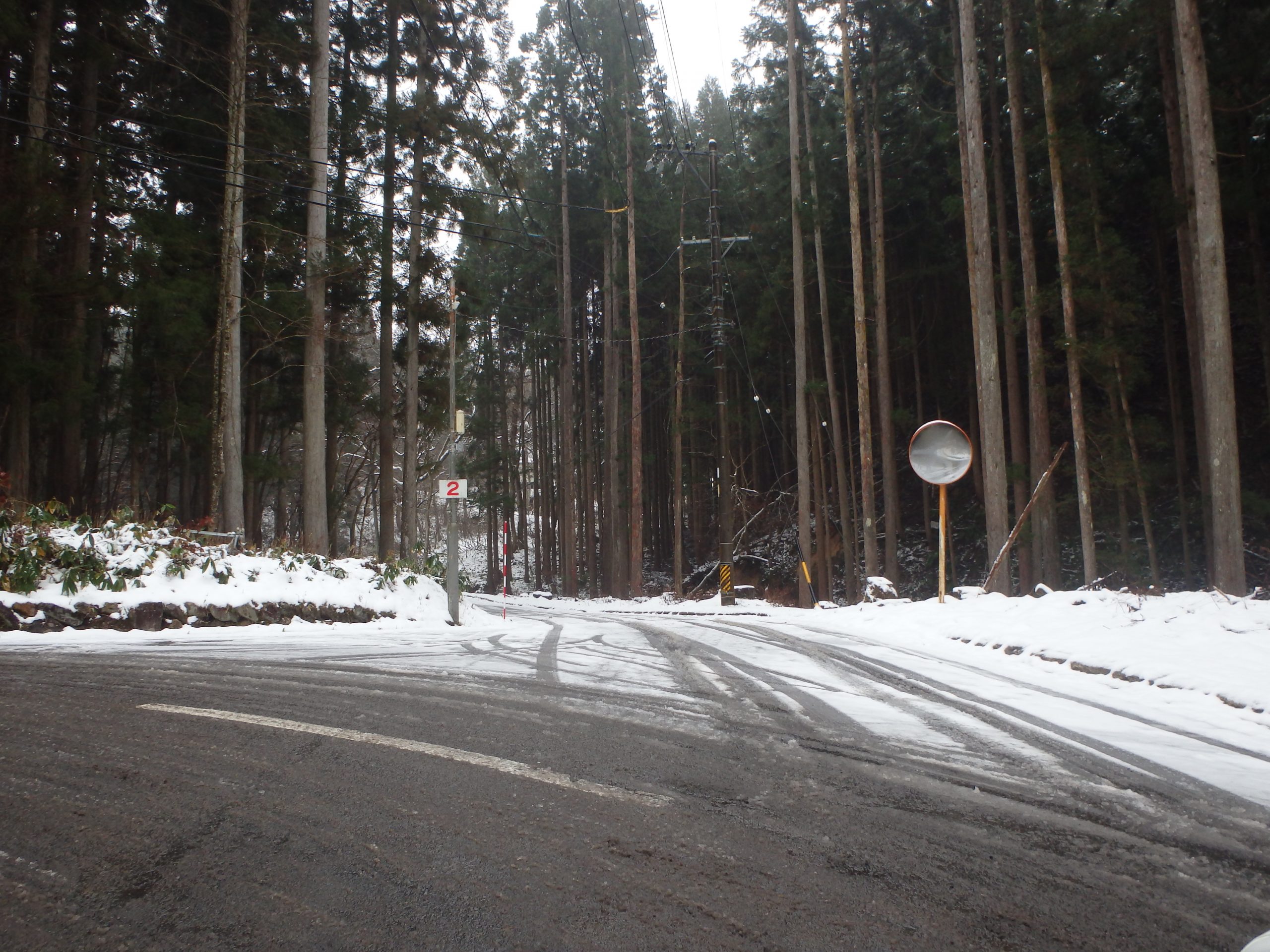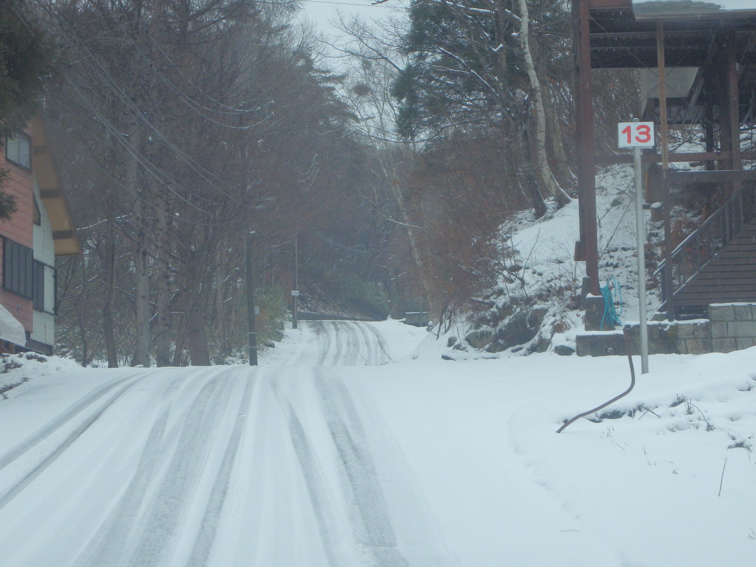 別荘地内は積雪は多くありませんが、朝晩の冷え込みや、日陰やカーブなどで道路が凍結・スリップしやすい場所があります。