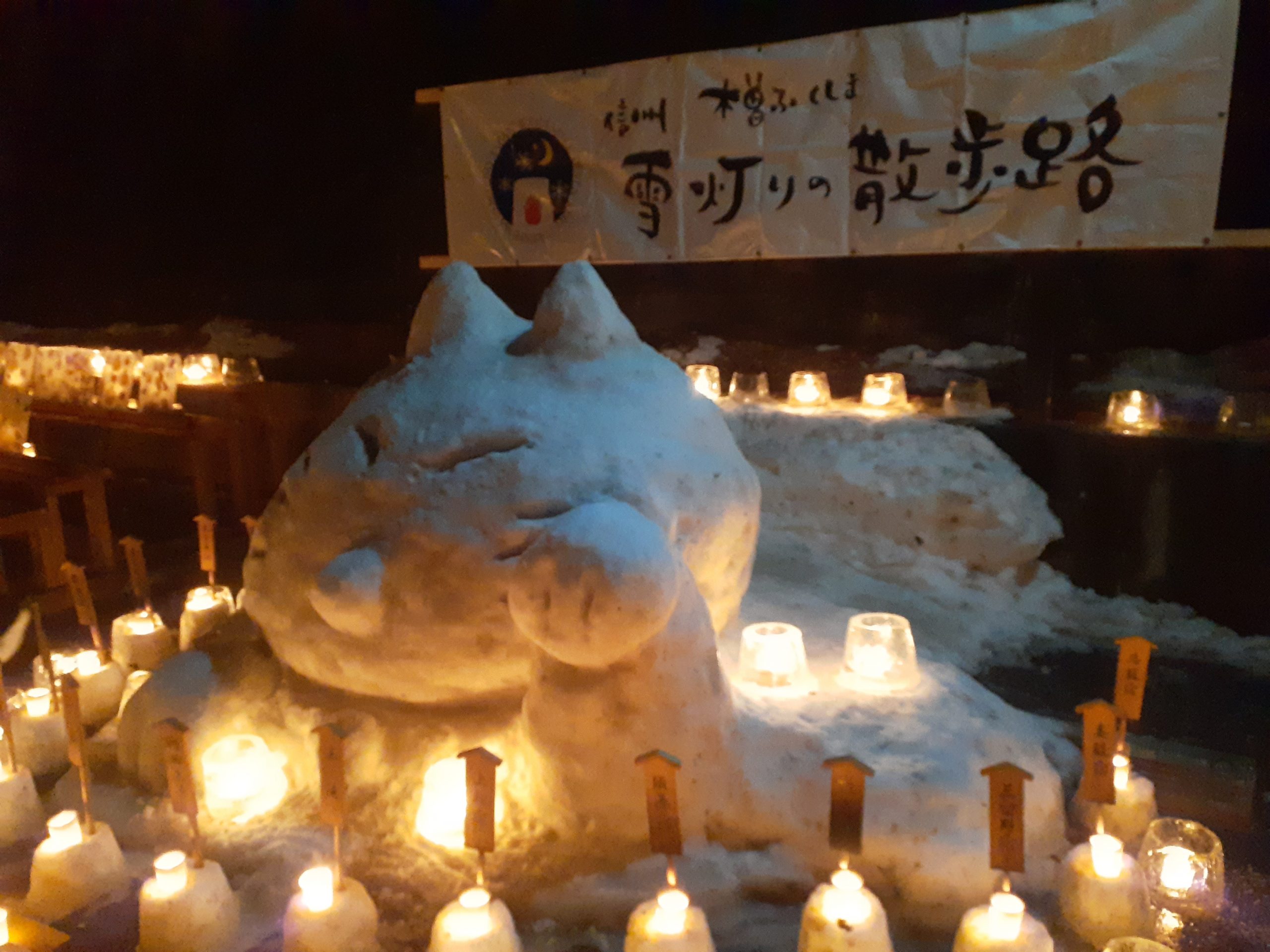 昨日、一昨日と木曽町では毎年恒例になっている‘雪灯り散歩道’の氷のキャンドルの祭典が開催されました