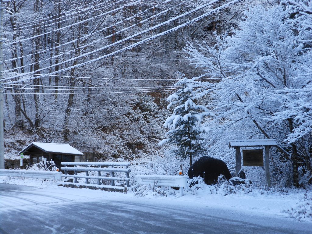 道路の凍結が見られますので気を付けてご通行ください