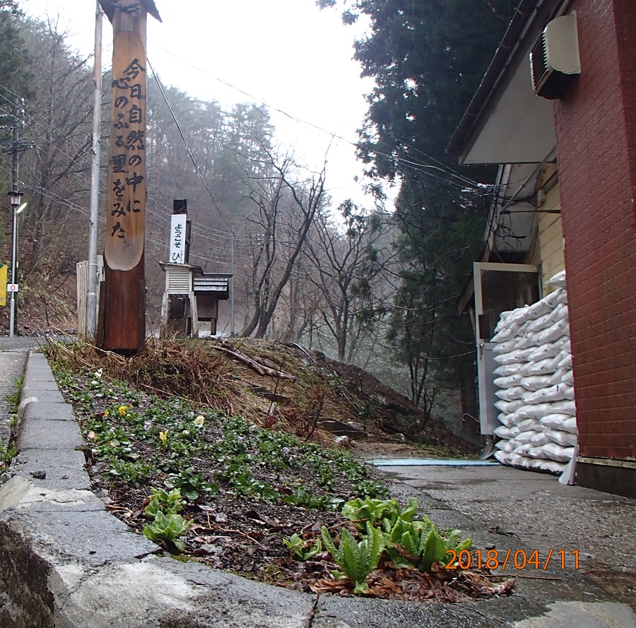 三岳にも桜が北上し一竹のそば屋付近の桜は満開となり見ごろをむかえています