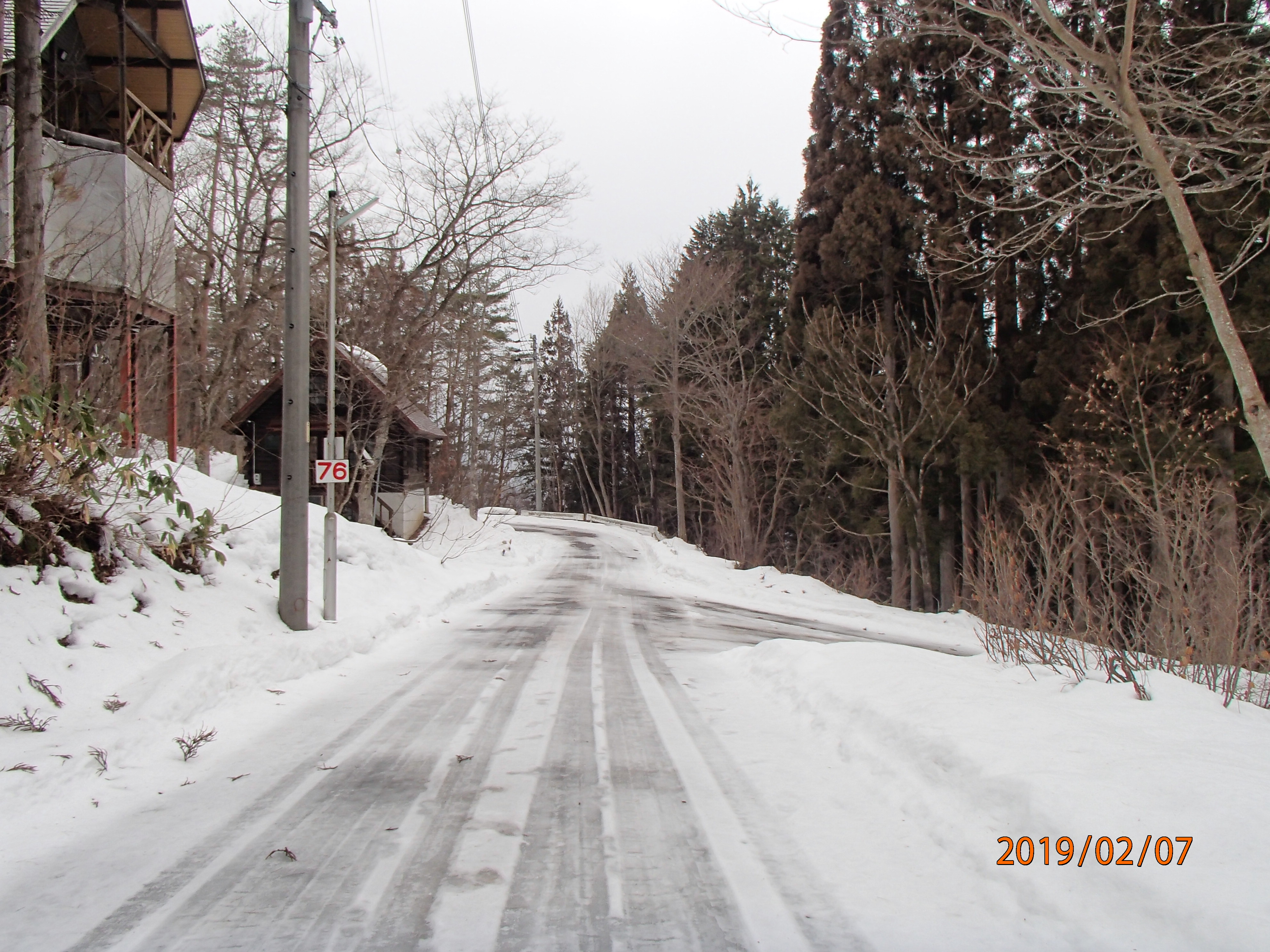 朝晩はツルツルですが昼頃には氷も解けアスファルト路面が出て来ます。