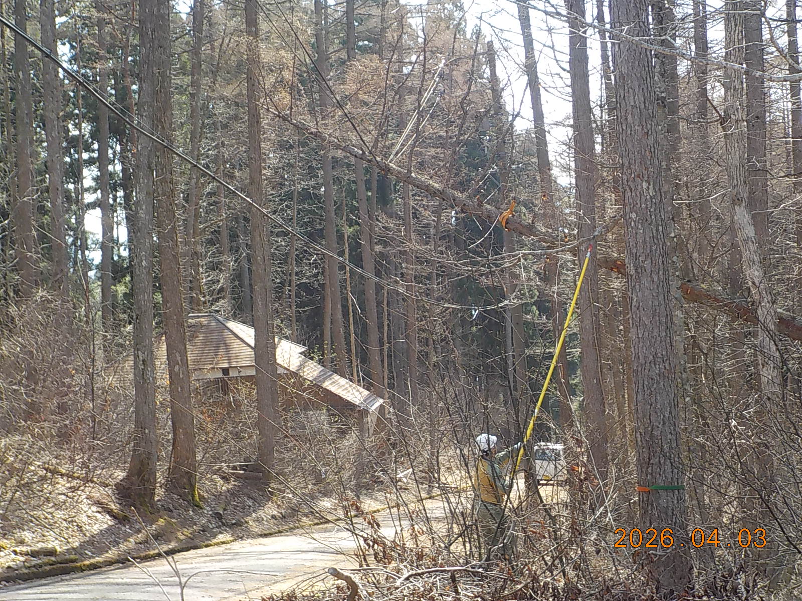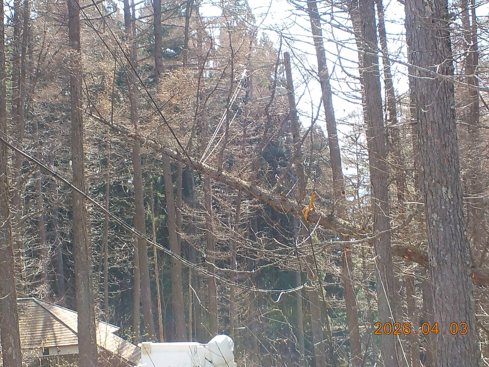 昨日、倒木が高圧線に接触する事案が発生いたしました。