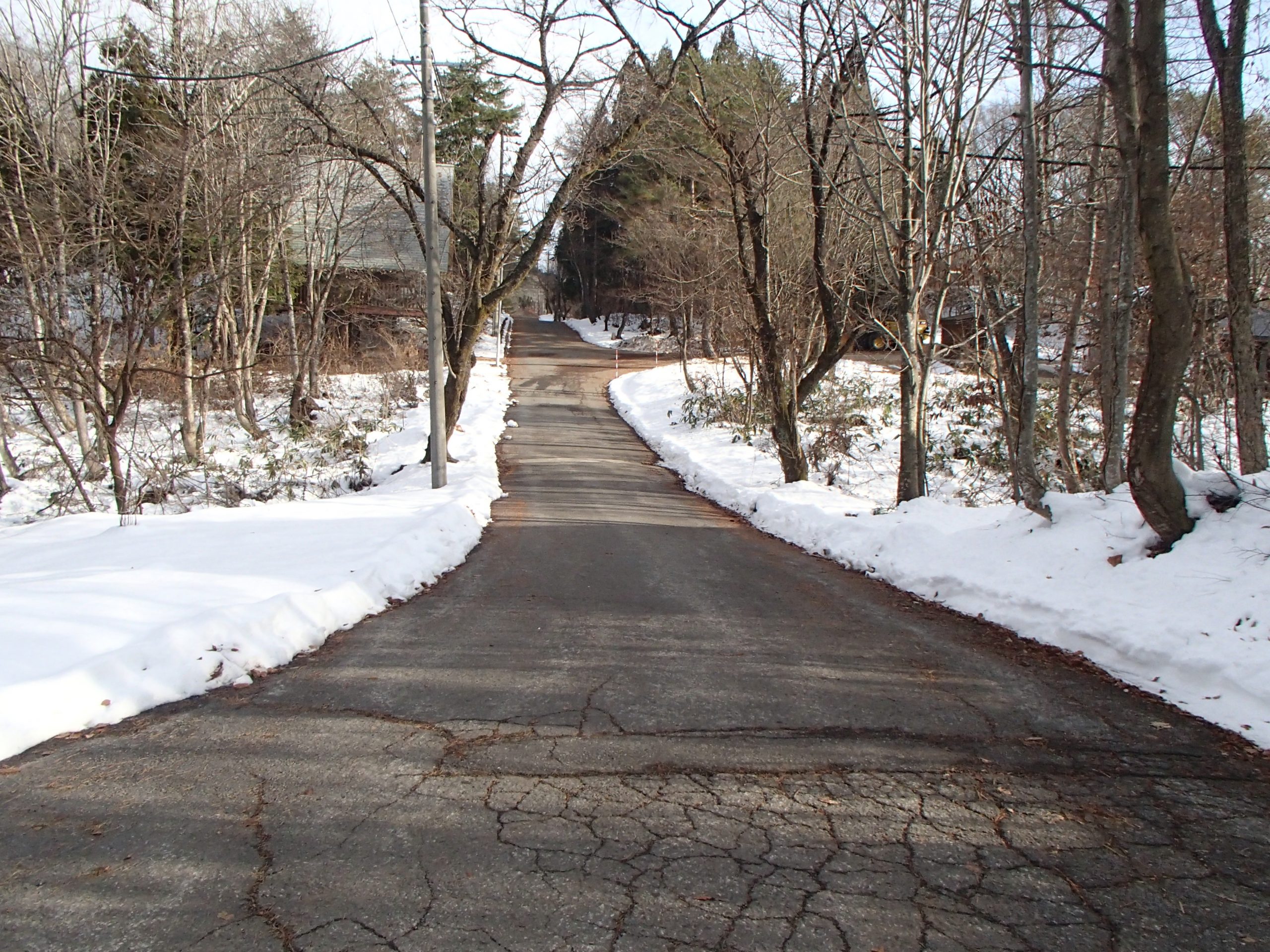 アスファルトが見えていても、凍結している部分があり滑ることがございますのでお気を付けください。
