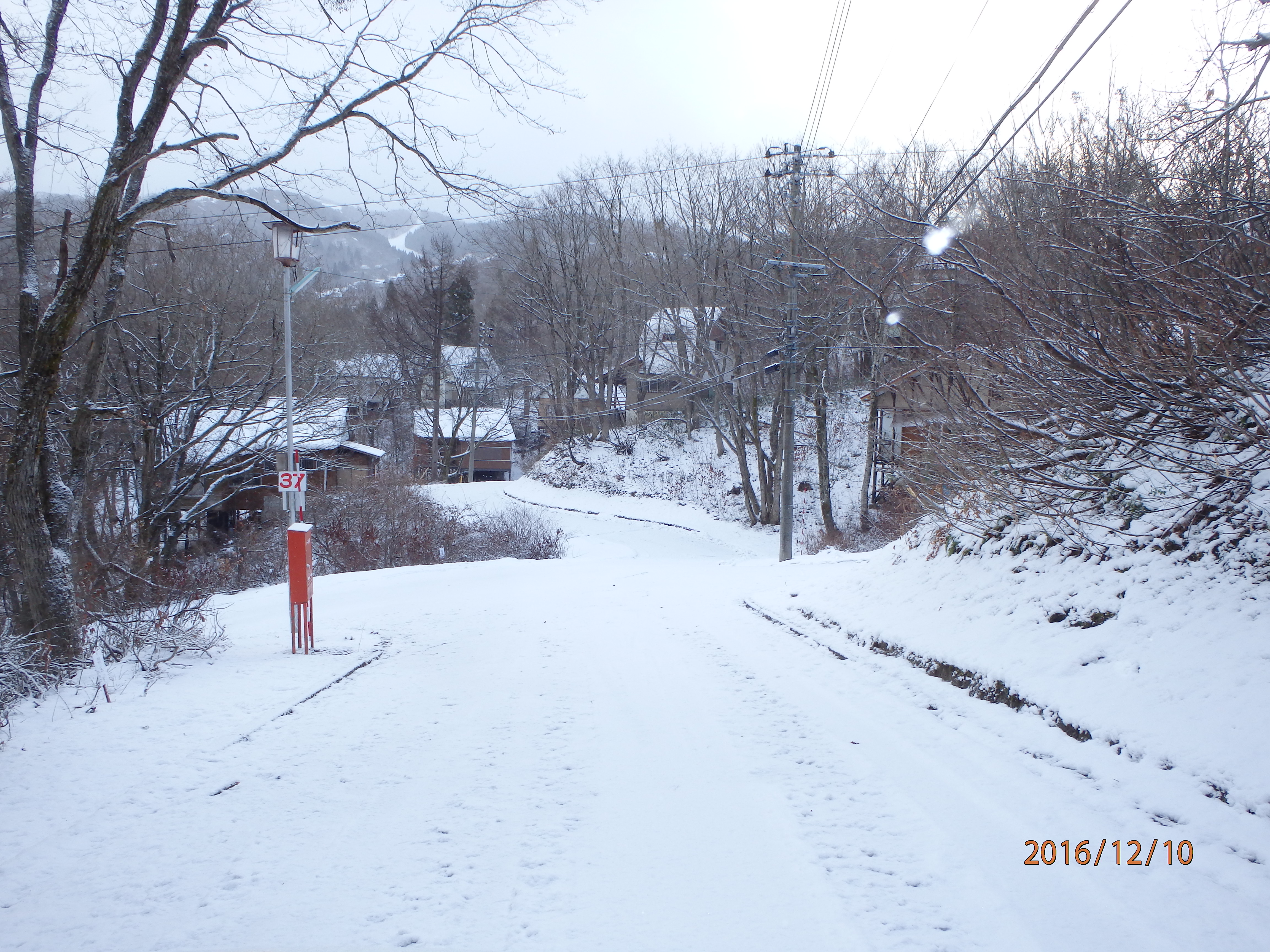道路には雪は有りませんが朝晩はマイナス気温になりますので濡れていると凍結しますよ。