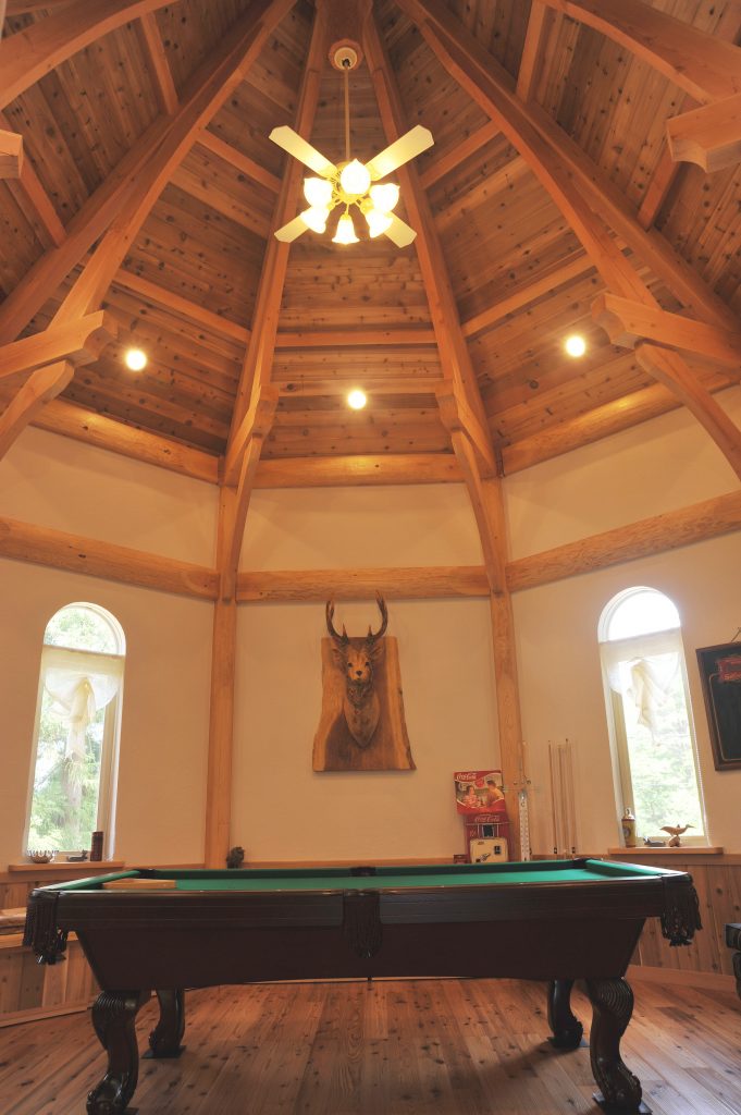 8角形のログ組です。天井材はウエスタンレッドシダーです。